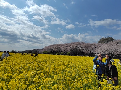 残念なことに,富士山に雲がかかっていましたが,菜の花は,例年より元気に咲いていました.