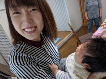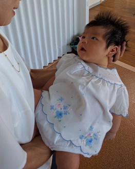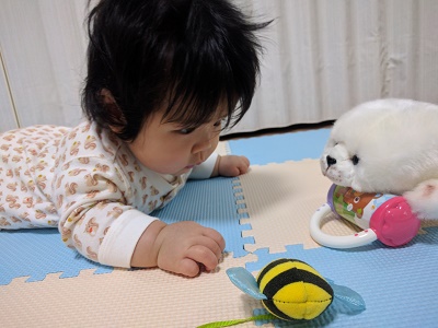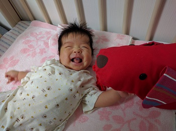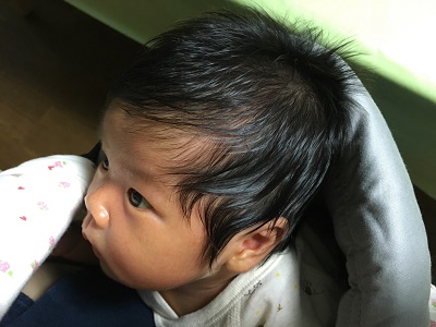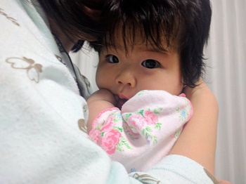 ちゃんと,お顔を上げて,大好きなおかあさんを見ている!