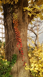 母宅近くの木が,午前9時と午後4時では,その色がすごく違っていて,びっくりです.