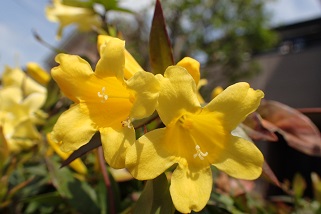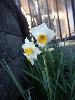 スイセンとわずかに咲いていたロウバイ