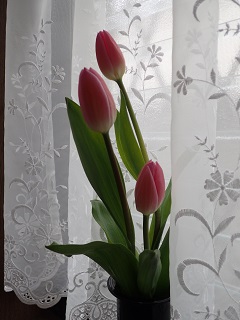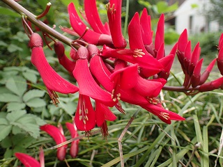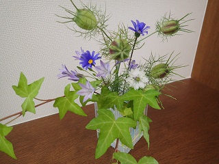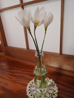 玄関に飾った花を見て,たかしに「これは,何という花?」と聞かれました.