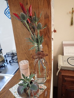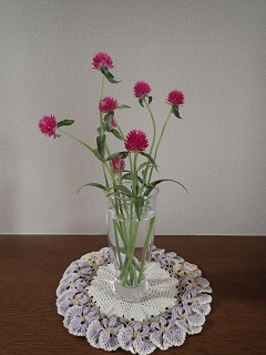 (なお,チラッと見える紫のドイリーは,数年前に,私がじゅんこからもらったものです.)