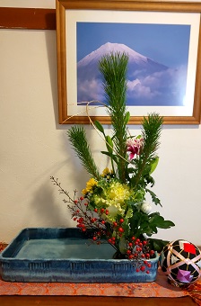 頑張ってお正月のお花を活けました.